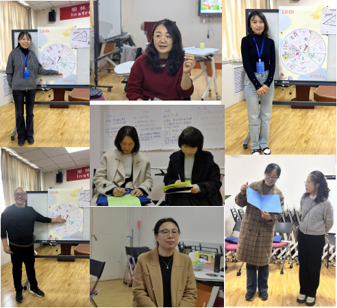 在迷你教学示范环节各位老师多次分别展示了他们在不同学科领域中的教学技巧和方法,为参训教师提供了宝贵的参考和借鉴。参与者被分成小组,轮流扮演教师与学生角色,尝试将理论知识转化为实践操作。这样的安排不仅加强了每位教师对于自身教学方法的理解与掌握,也促进了团队间的协作与反馈机制的建立。