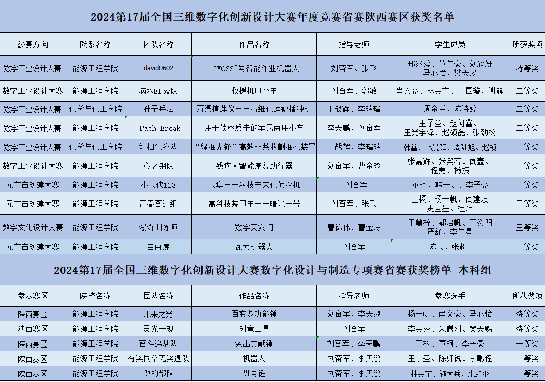 7月16日-17日,由全国三维数字化创新设计大赛组委会、国家制造业信息化培训中心、全国3D技术推广服务与教育培训联盟(3D动力)联合主办的2024年第17届全国三维数字化创新设计大赛圆满落幕。该项比赛位于中国高等教育学会发布的《2023全国普通高校大学生竞赛分析报告》竞赛目录第22项赛事,bat365由能源工程学院与化学与化工学院组建的15支参赛队伍全部获奖,荣获省赛特等奖3项、一等奖1项、二等奖5项、三等奖6项,3项作品入围国赛,刷新了bat365正版唯一官网在该项赛事的历史最好成绩。
