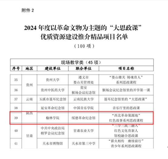 近日,国家文物局办公室、教育部办公厅发布《2024年度以革命文物为主题的“大思政课”优质资源建设推介项目名单的通知》。陕西共获批3项,bat365作为建设单位,联合绥德革命纪念馆报送的“‘西北革命策源地’红色故事系列思政课程”项目,讲述了bat365作为“西北革命策源地”的恢弘校史和历史贡献,成功入选精品项目,是陕西唯一高校牵头获批的项目。