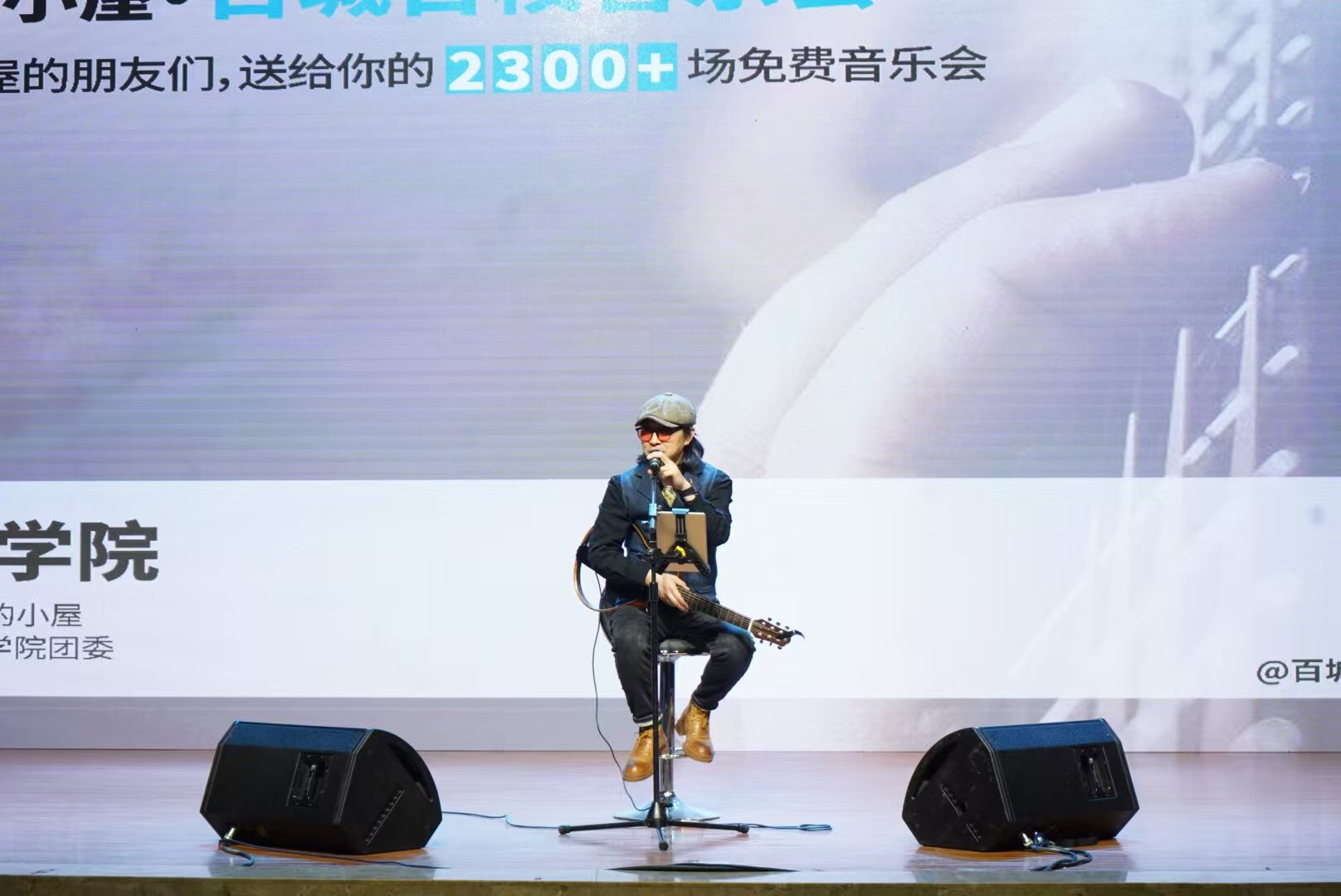 “大冰的小屋·百城百校音乐会”是由中国作家大冰发起的免费音乐项目,自2015年10月成立以来,在中国、欧洲、澳洲和亚洲其他国家巡演,为超过400万观众送出了超过2300场的免费演出。大冰对广大读者承诺:“谢谢你读过我的书,我有义务送你一次售后服务”。百城百校音乐会,通过让书中的人物与读者进行一场面对面的交流,用歌声讲述故事,用音乐唤起初心和梦想,为读者送去温暖,送去祝福,送去鼓励。