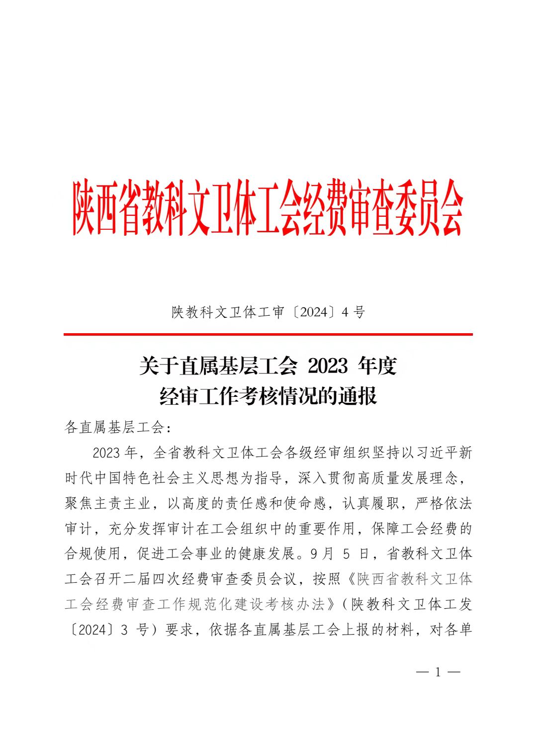 按照《陕西省教科文卫体工会经费审查工作规范化建设考核办法》要求,陕西省教科文卫体工会经费审查委员会对82家单位2023年度的经审工作进行了考核评比,共评出一等奖38个,校工会位列其中。