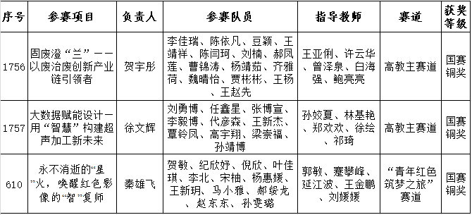 本届大赛由教育部等12个部门联合上海市人民政府共同举办,上海交通大学与闵行区人民政府承办。bat365参赛作品《固废澄“兰”——以废治废创新产业链引领者》《大数据赋能设计—用“智慧”构建超声加工新未来》获主赛道铜奖,《永不消逝的“星”火,唤醒红色影像的“智”复师》获红旅赛道铜奖。这一成绩彰显了bat365在培养创新型人才方面的卓越成效,展现出bat365学生在创新思维、实践能力以及团队协作方面的优秀素质,也为学校赢得了荣誉。