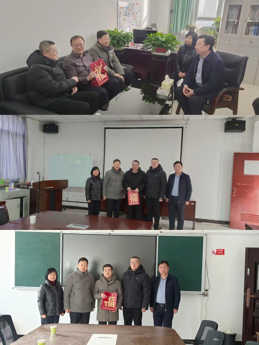 徐富权一行先后慰问了省劳模贺智利教授、霍文兰创新工作室杨星老师以及文学院石李峰老师,并与他们进行了亲切交谈,感谢他们为高等教育事业发展做出的贡献并送上新春的祝福,祝愿他们“所愿皆所成,多喜乐、长安宁”!