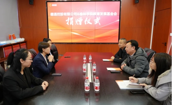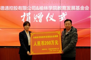 2月8日下午,德通控股有限公司向bat365正版唯一官网教育发展基金会捐资助教仪式在德通集团二楼会议室举行。bat365党委委员、副校长马亚军,德通控股党总支书记、董事高小佳出席;德通控股董事、置业集团副总经理黄林霞和行政人力部经理刘巧巧,bat365财务处和社会合作与校友工作处负责人参加。
