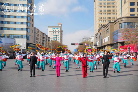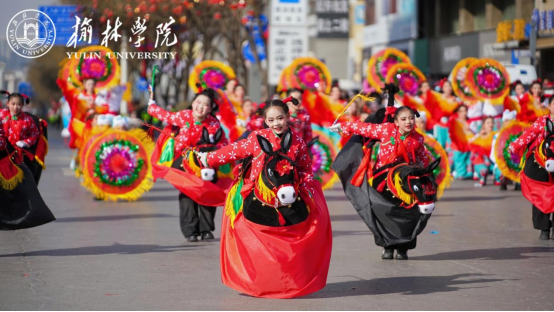 第三是提升四大实效。一是兼收并蓄特长提升群众喜爱度。在编排上注重吸收榆林市在国家级、省级秧歌演出展演获奖项目的特长,博采吸纳广场舞、儿歌等不同年龄段群众喜欢的内容形式,推动内容形式让不同类型的群众都能喜爱。二是注重融合创新塑造多个观赏点。跑驴中的音乐《小毛驴》融合了传统弹拨乐器三弦;说唱《榆林教育新格局》中,在音乐编曲领域,创新性地融合了陕北地区的传统乐器——二胡与唢呐,并与现代电声乐器如合成器、架子鼓、贝司、爵士鼓相结合,形成了一种独特的跨文化音乐风格,让非遗进校园阶段性成果最大程度缩影展现。三是丰富展演群体提升秧歌吸引力。在遴选本土师生表演基础上,组织14位留学生加入秧歌表演,组成十二生肖方阵,让来自海内外的朋友领略中华文化魅力,为全国秧歌展演增添“国际范儿”。四是注重宣传推广提升榆林城市知名度。与陕西电视台榆林记者站、榆林传媒中心等权威媒体合作,全方位、多角度录拍照片、视频,构建“报、台、网、两微、视频号”立体化宣传平台,通过新闻宣传、现场展演、嘉宾访谈、经验介绍等多元形式,在新华社、腾讯新闻、齐鲁晚报、三秦网、西部网、榆林网等众多媒体宣传展示,进一步提升榆林文化的魅力,推动榆林名片响亮全国。