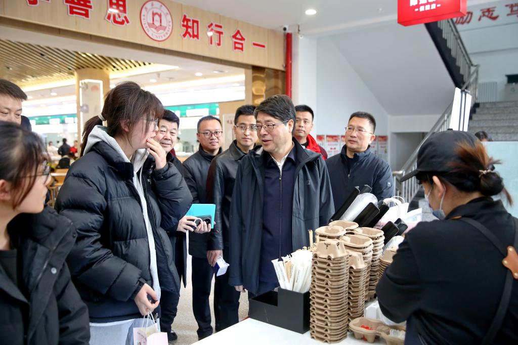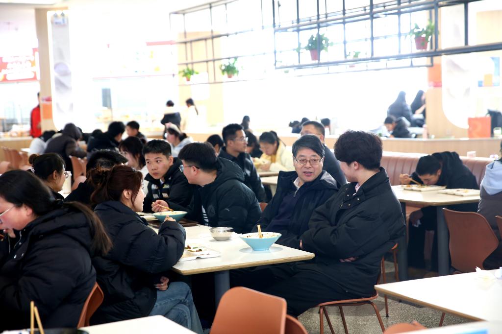 “今天饭菜的味道怎么样?够不够吃?”“价格合适吗?”“对食堂有没有建议?”同学说:“味道还不错,分量足,价格也合理。”在陪餐过程中,张新柱与同学们亲切交谈,详细询问了同学们近期的学习生活情况,叮嘱同学们养成良好的饮食习惯,文明就餐,践行“光盘行动”。同学们围绕青春、奋斗、成长、成才等话题分享了各自在大学的成长与心得。从学业上的困惑到生活中的点滴,从职业规划到对学校的建议,同学们畅所欲言,气氛热烈而融洽。