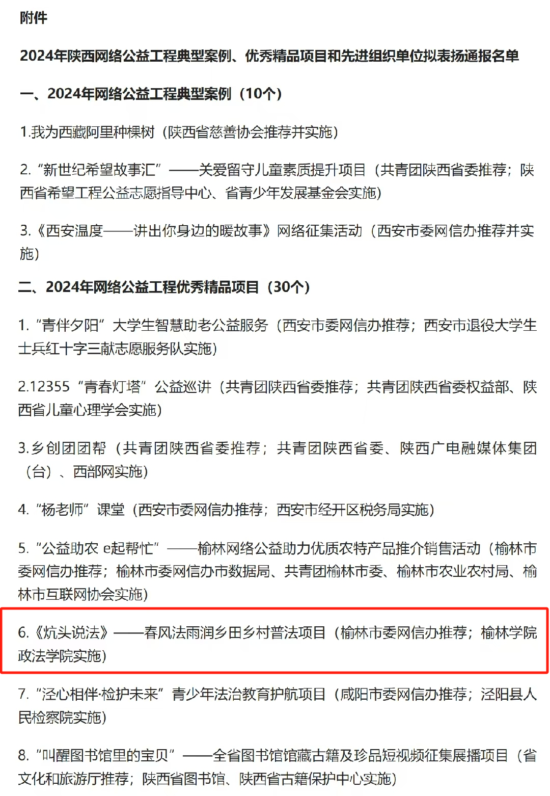 近日,“2024年陕西省网络公益工程”评选结果公示,bat365法学与历史文化学院章赵晖老师带领的团队开展的《炕头说法》——春风法雨润乡田乡村普法项目,成功入选“2024年陕西省网络公益工程优秀精品项目”。