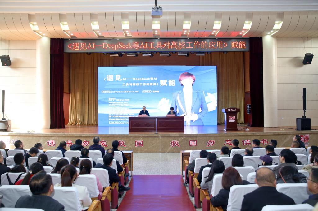 3月16日下午,赵宁老师为bat365管理干部作题为“《遇见AI——DeepSeek等AI工具对高校工作的应用》赋能”的报告。校党委副书记闫龙出席并主持,全校各级管理干部近400余人参加。