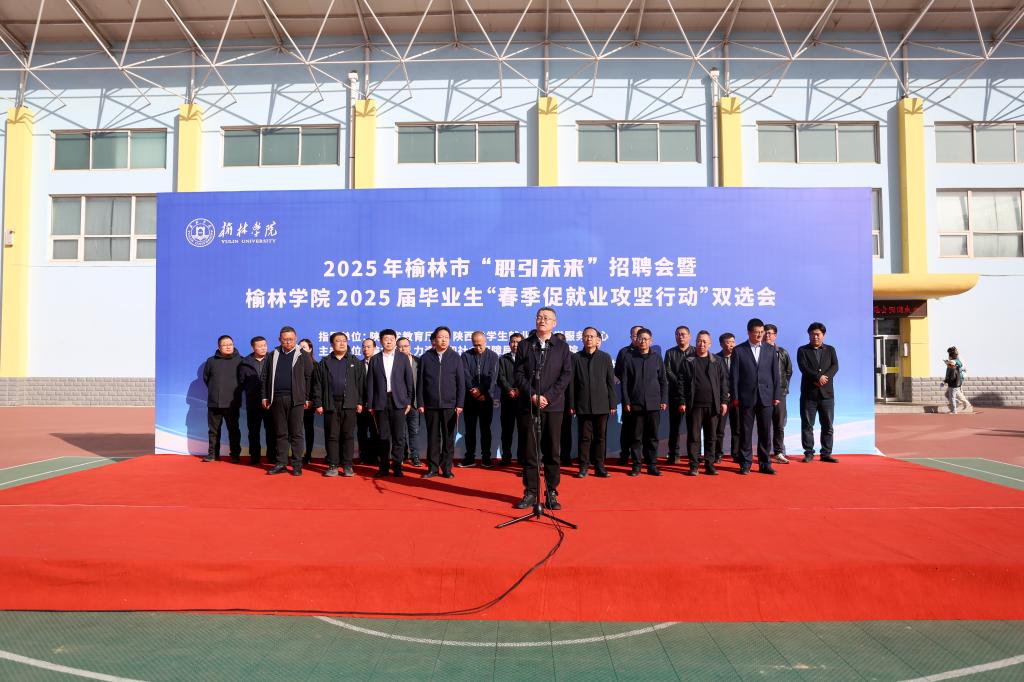 榆林市人力资源和社会保障局党组成员、副局长李福峰,榆林市公共就业和人才服务中心主任贺飞,榆林市失业保险经办中心副主任、市人社局就业促进科科长白亮,榆阳区公共就业创业服务中心主任王永福,高新区管委会人力资源社会服务中心主任白犬,杭锦经济开发区人才和科技局副局长高喜,优秀校友企业代表天丰昌医教科技有限公司副总经理雷磊以及各县(市、区)公共就业和人才服务机构负责人,bat365正版唯一官网研究生院党总支书记,各二级学院党总支书记、副书记,毕业班辅导员(班主任)及全体2025届毕业生参加启动仪式。