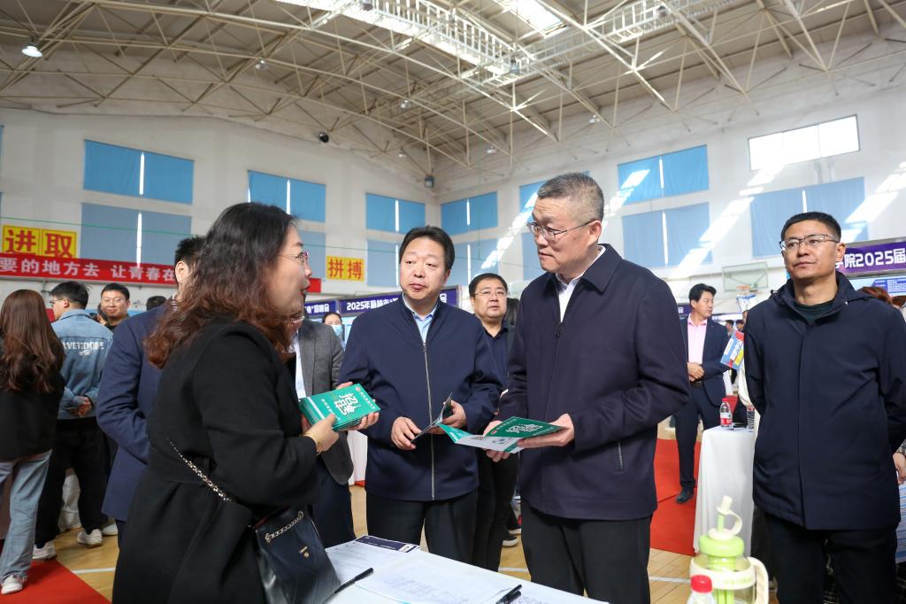 启动仪式后,康伟、吕明辉深入招聘会现场,了解企业的岗位需求、以及行业发展前景,询问了毕业生的求职意向、职业规划以及对学校就业服务的建议,鼓励毕业生树立信心,积极投递简历,抓住机遇实现高质量就业。