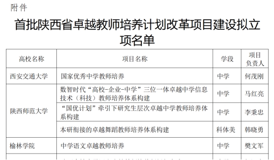 近日,陕西省教育厅公布了首批“卓越教师培养计划改革项目”拟立项名单,文学院汉语言文学专业申报的《中学语文卓越教师培养》经学校推荐、材料审查、专家评审和现场答辩等环节获批立项建设。据悉,首批陕西省卓越教师培养计划改革项目共立项40项,旨在通过3到5年的努力,打造一批高水平、有特色的师范专业,为陕西基础教育输送更多的“卓越教师”。