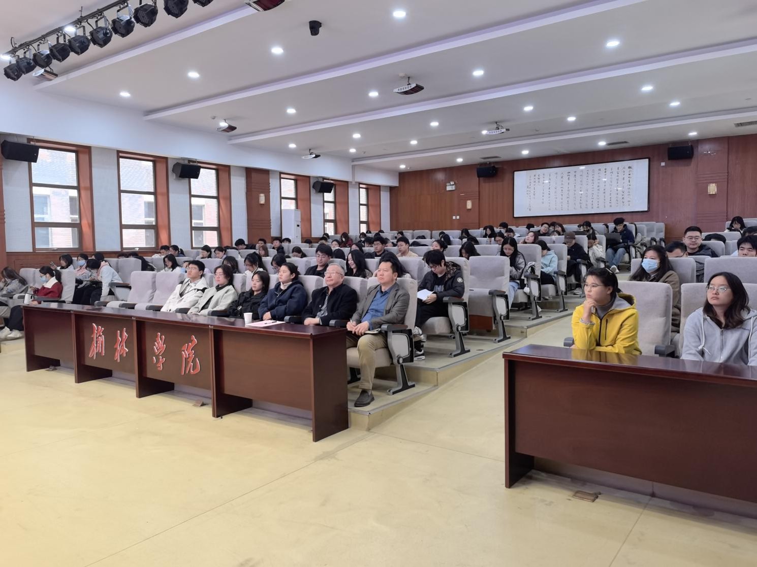 互动环节,师生围绕“新质生产力与区域经济转型”“高校科研成果转化机制”等话题踊跃提问。丁教授结合政策动向与实践经验逐一解答,并鼓励青年学子立足专业、关注前沿,为高质量发展贡献智慧。