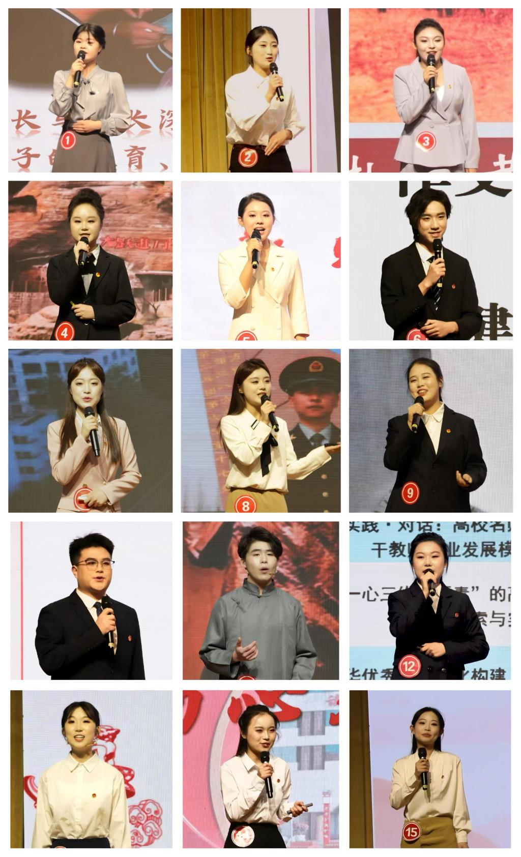 学工部负责人对选手们运用方言导入、情景演绎、时空对话、才艺展示等表现方式给予了高度评价。经过激烈角逐,文学院冯婧曈、教育学院安梓萌、绥德师范学院王瑞依荣获一等奖;现代农学院董馨文、教育学院米紫悦、马克思主义学院王一乔、法学与历史文化学院李伟哲、文学院王怡清荣获二等奖;教育学院王心睿、文学院薛雅丹、法学与历史文化学院张世锴、现代农学院王梓桐、现代农学院王云园、教育学院苏宇静、管理学院贾香芸荣获三等奖。教育学院、文学院、现代农学院荣获最佳组织奖。校史办公室负责人为15名选手颁发了bat365正版唯一官网2025年校史讲解员聘书。