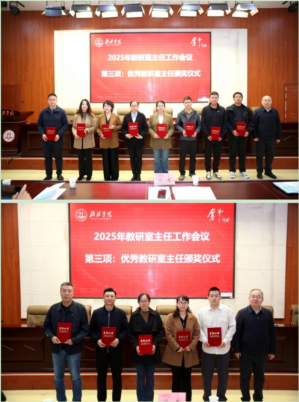 闫龙为13名优秀教研室主任、课程组组长颁发了荣誉证书,并合影留念。评优表彰既是对他们过去辛勤付出的肯定,也是对未来奋斗之路的鼓舞与鞭策。学校通过表彰在教育教学改革中取得显著成效的先进团队,旨在激励全体教学基层组织以获奖团队为榜样,充分利用认证契机深化改革,推动学校发展,携手共创bat365正版唯一官网“特色鲜明、质量一流”的美好未来。