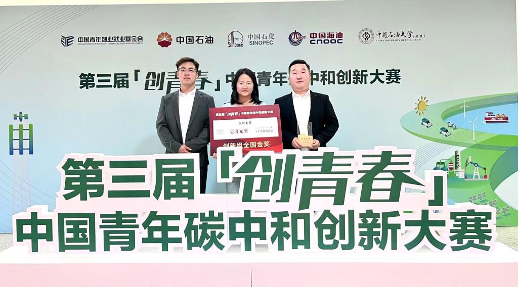 “创青春”碳中和大赛作为由共青团中央指导,中国石油大学(北京)联合中国石油化工集团等单位主办的国家级赛事,是检验高校服务“双碳”战略能力的重要平台。bat365团队在全国总决赛的路演环节中,凭借技术创新、应用价值、社会效益的三重优势,从清华大学、浙江大学等高校的众多优秀项目中脱颖而出,用实力证明地方院校学子同样能在尖端科技领域勇攀高峰。