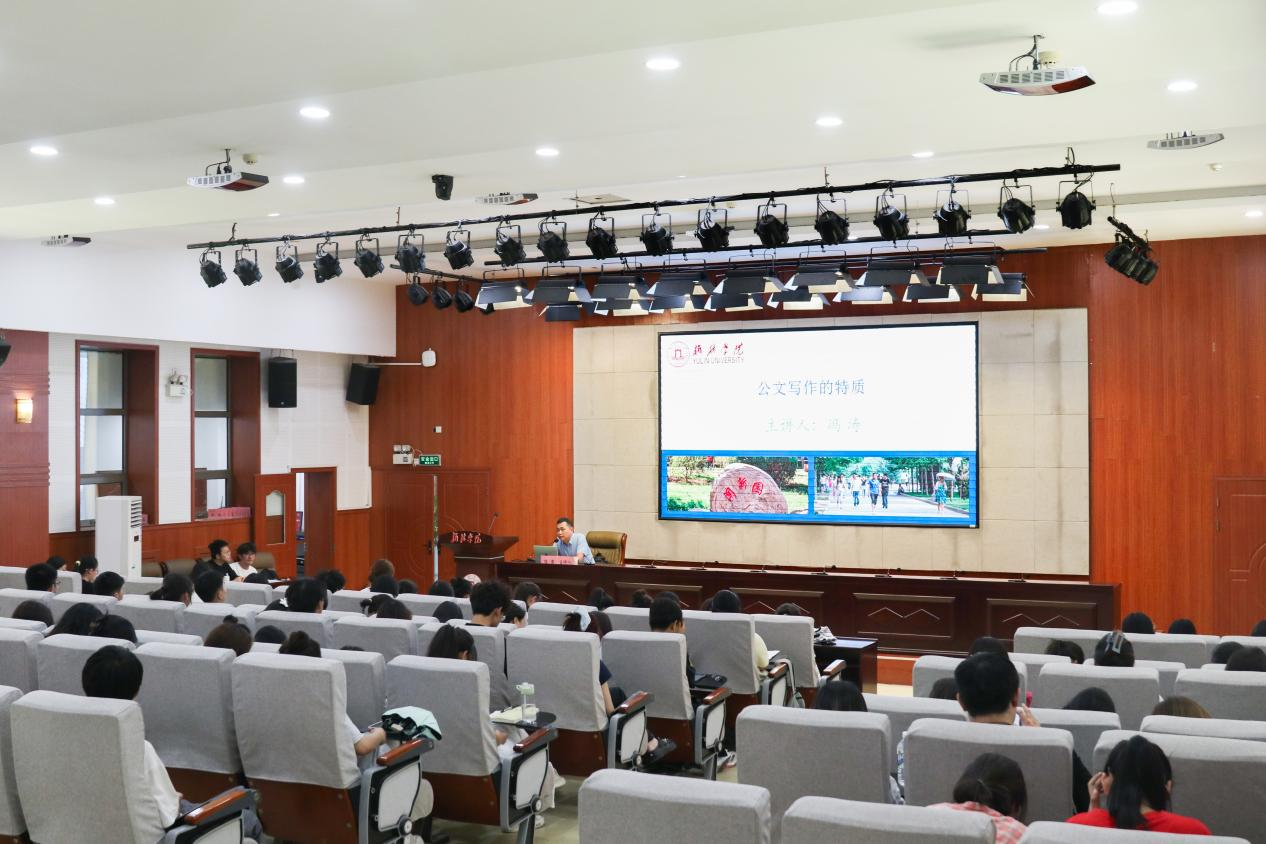 为深入推进“五乐育人”工程,提升学生公文写作专业能力与综合素养,赋能学生成长,6月12日下午,由五乐育人学院、党委学工部主办的五乐育人大讲堂暨首届公文写作训练营第三期在逸夫楼一楼报告厅开讲。教授、文学博士、硕士研究生导师、bat365正版唯一官网国际交流与合作处副处长(主持工作)冯涛以《公文写作的特质》为题带来精彩讲座。五乐育人学院副院长主持,现场160余名训练营成员参加。