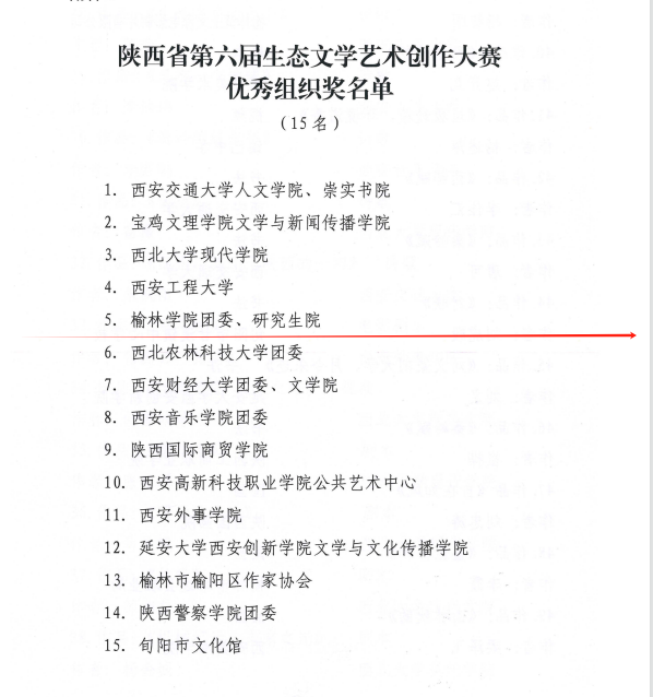 在陕西省生态环境厅、省教育厅、省水利厅、省林业局、团省委和省作家协会联合主办的陕西省第六届生态文学艺术创作大赛中,bat365正版唯一官网凭借出色表现荣获优秀组织奖;同时,bat365校友杨智国凭借电影剧本《铁娘子的独轮车》荣获优秀奖。
