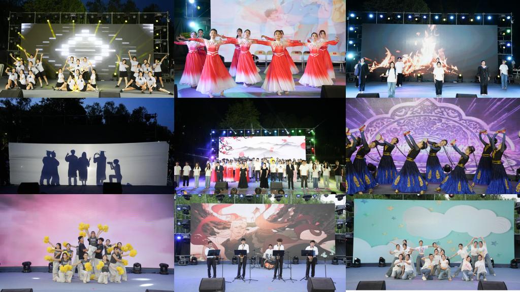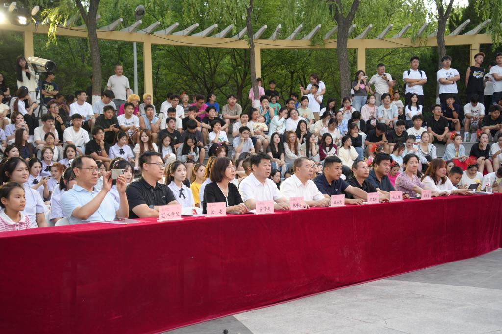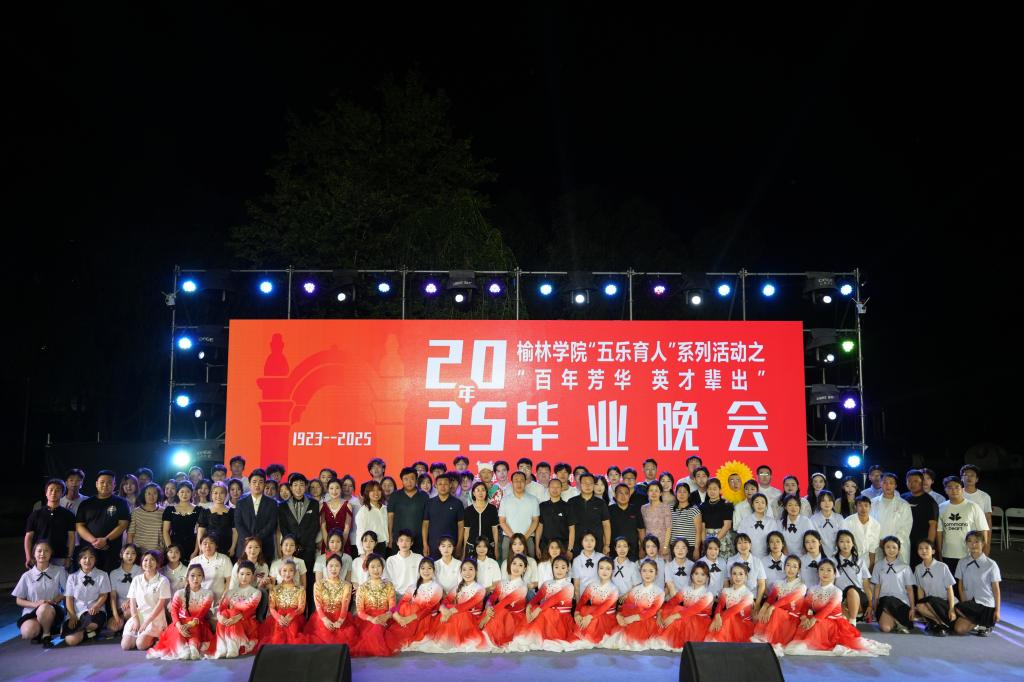 晚会现场,霓虹光影与漫天星辰交相辉映,将整个广场幻化为流光溢彩的艺术星河。16个匠心编排的节目依次登场:艺术学院带来的现代舞《我的未来式》以动感韵律点燃全场热情,乐器四重奏《黑神话悟空》巧妙融合鼓声与萨克斯,在传统与创新的旋律交织中彰显文化传承与创新的成果;体育学院的啦啦操《王牌飞行员》以翻腾跳跃的舞姿诠释拼搏精神;文学院的《少年游》在平仄韵律间流淌书香雅韵;研究生院小品《追光者联盟》用诙谐演绎展现科研工作者的坚守初心;李子洲大学生艺术团的《不忘初心》以曼妙舞姿生动诠释奋斗精神与使命担当,淋漓展现榆苑学子的昂扬风貌;大学生讲解队别出心裁演绎的《新闻联播》,彰显出学生群体扎实的知识储备与蓬勃的青春热忱;建筑工程学院的相声《我爱陕西话》、体育学院的陕北民歌《小桃红》、艺术学院的民族舞《生命的摇篮》等节目,将黄土地的文化底蕴与现代艺术表达深度糅合,鲜活展现地域文化与时代精神的共生共荣;文学院的歌伴舞《嘿,姑娘》、教育学院的现代舞《青春放映中》等作品,以青春才情、多元文化与时光记忆交织成视听盛宴;文学院与法学与历史文化学院联袂呈现的《光影・记忆》,以创意形式镌刻岁月华章与青春印记;马克思主义学院与能源工程学院带来的视频配音《杀青》,用浪漫声线编织光阴故事;压轴舞蹈《凤凰花开的路口》以“破茧成蝶”的意象圆满收官,演职人员与现场观众激情齐唱“愿此去繁花似锦,再聚首仍是少年”,灯光将沁园映照得璀璨夺目,晚会在“个人理想融入时代洪流”的情感共鸣中缓缓落幕。