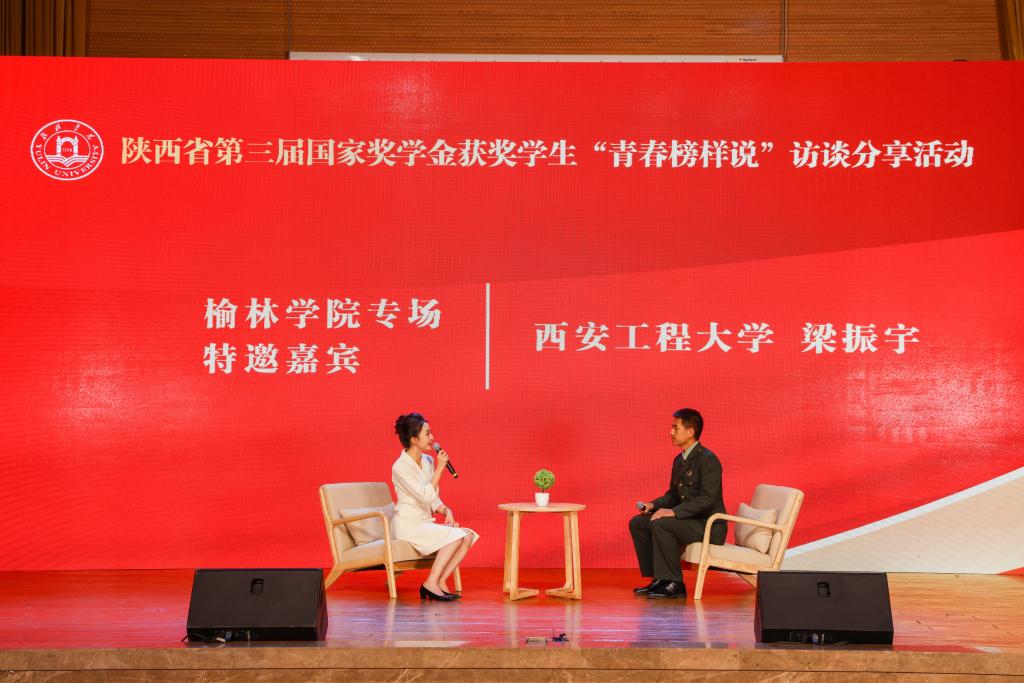 活动包含“校内榜样宣讲”和“跨校嘉宾访谈”两个部分。在校内环节,8位青春榜样领航员分享了各自的奋斗故事,生动讲述了“挑灯夜读的坚持”、“竞赛协作的拼搏”、“打工求学的自强”、“军营淬炼的担当”等学习与成长细节,分享了可借鉴、可复制的宝贵成长经验。跨校环节特邀西安工程大学国家奖学金获得者梁振宇同学,他以“从海防战士到科研达人”的跨界经历,生动诠释了“见红旗就扛,见第一就争”的拼搏精神。互动环节气氛热烈,同学们踊跃提问,就学业实践平衡等话题与榜样深入交流,引发了在场同学的强烈共鸣和深入思考。