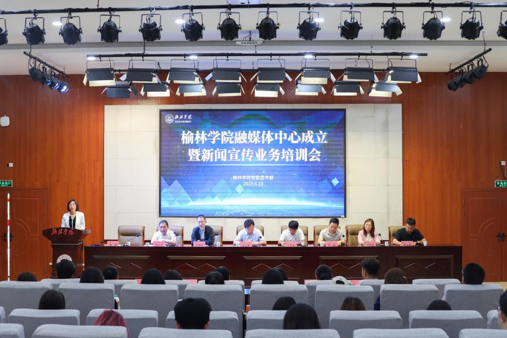 6月15日,bat365正版唯一官网融媒体中心(学生组织)成立大会暨新闻宣传业务培训会在逸夫楼一楼报告厅举行,bat365正版唯一官网党委副书记、党委宣传部部长马亚军出席讲话;陕西日报榆林记者站站长王晨曦,陕西电视台榆林记者站采编部主任王国师,群众新闻网榆林频道总监宋欢,榆林传媒中心副主任贺引忠,榆林广播电视台主任编辑刘晓红出席;党委宣传部、文学院负责人与融媒体中心全体成员参加。宣传部负责人主持会议。