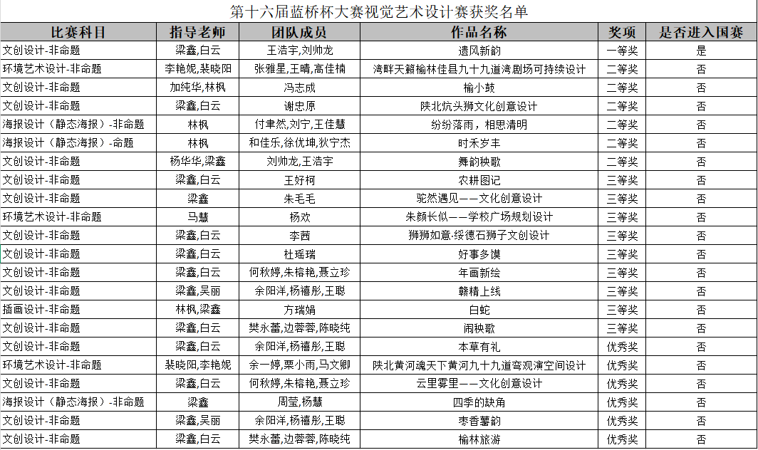 近日,第十六届蓝桥杯大赛视觉艺术设计赛省赛获奖名单正式公布。bat365艺术学院参赛团队凭借兼具文化深度与创新思维的设计作品脱颖而出,在赛事中斩获多个奖项,其中“遗风新韵” 团队作品荣获省赛一等奖并成功晋级国赛,充分展现了学校在设计领域的教学成果与专业实力。