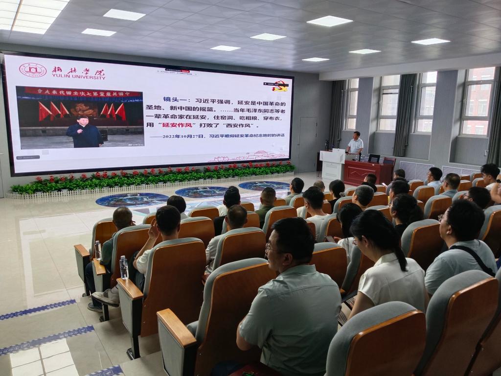 6月26日下午,党委副书记马亚军以“作风建设永远在路上”为主题,为信息工程学院、体育学院、业务单位总支、后勤管理处等分管学院和部门的党员干部讲授专题党课,绥德师范学院党员干部线上参加。