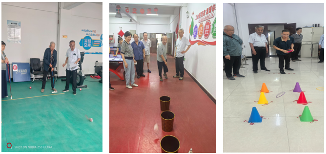 根据老年同志们身体特点,离退休党总支精心设计的六大趣味项目轮番“登场”:“收金银果”、套圈、羽毛球投准、仿保龄球、门球、飞镖命中项目,个个精彩纷呈。88岁高龄的王仰明先生尤为引人注目,他全程热情高涨,积极参与每一个项目,展现出老党员不服输的劲头;像他一样,现场共有10余位80岁以上的老同志踊跃参赛,以实际行动诠释了“生命不息、运动不止”的精神。
