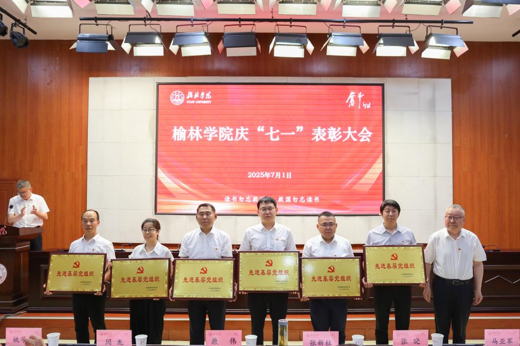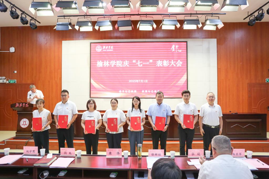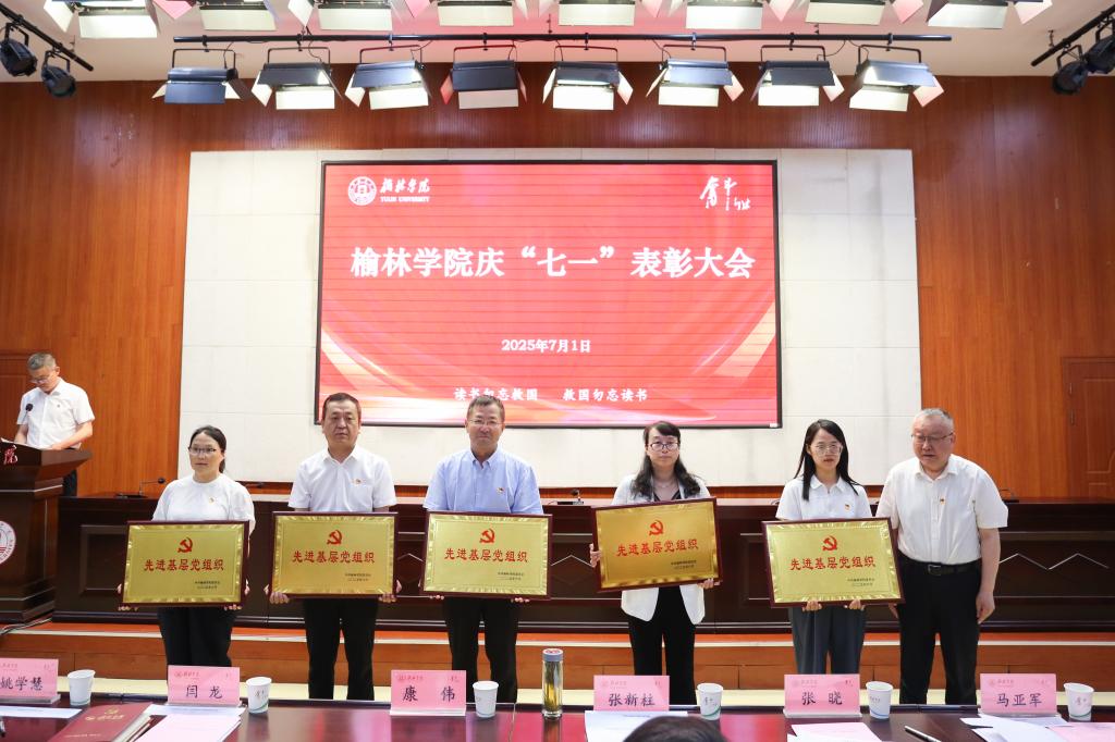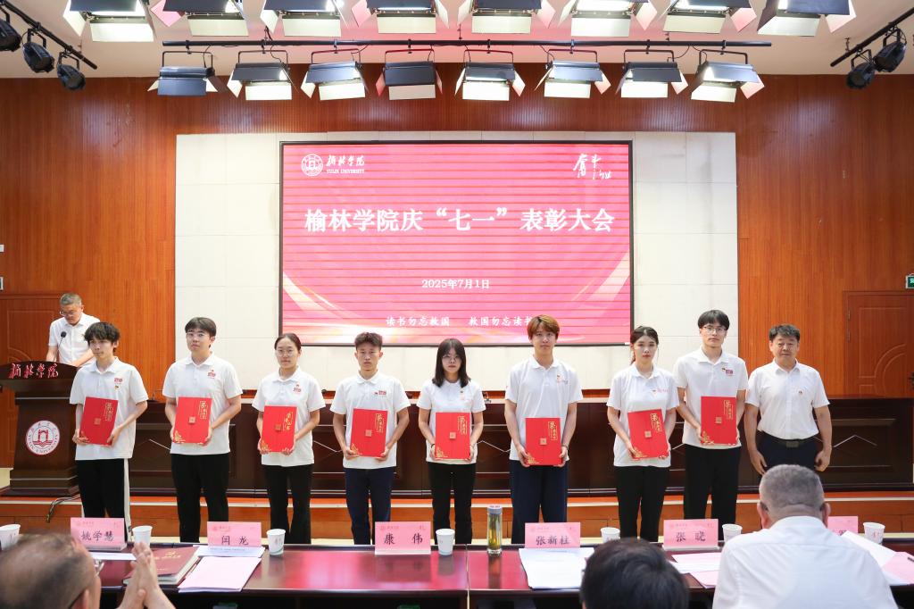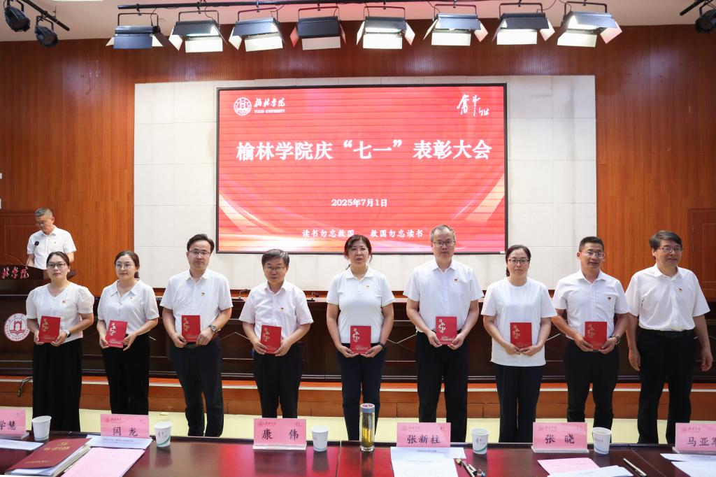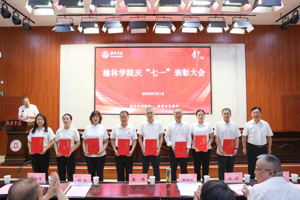 表彰先锋树标杆。闫龙宣读表彰决定,校领导分别为先进基层党组织、优秀共产党员、优秀党务工作者和优秀思政工作者颁奖。先进基层党组织书记代表屈雷、优秀教工党员代表李晓焱、优秀党务工作者代表延江波及优秀学生党员代表夏文艺先后发言。屈雷指出,作为高校最基层的一级组织,党支部始终坚持扎根榆林、立德树人,坚持科研引导助发展、专业辅导促成才,持续推进“五乐育人”工程。李晓焱表示,作为党员教师要以学术的态度研究教学,以专业的态度开展教学,以创新的态度突破教学,以育人的态度深耕教学,努力奋斗站稳讲台,站好讲台,站活讲台,用实际行动诠释共产党员的责任担当,以全部力量践行追赶超越的使命担当。延江波认为,要打造“叫得响”的党建品牌,让思政教育可触可感;要推行“贴得近”的暖心举措,让服务学生有情有义;要锤炼“靠得住”的骨干队伍,让育人工作可担可当。夏文艺觉得,作为新时代的青年党员肩负着双重使命,既要潜心钻研夯实专业基础,更要胸怀“国之大者”心系民族未来。