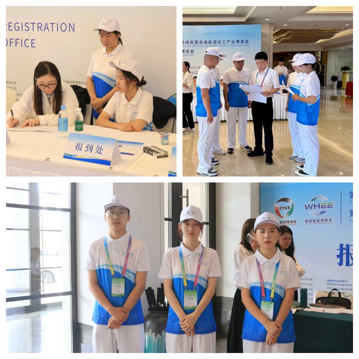 展会期间,志愿者们“多点开花”,在报到咨询、迎宾指引、餐饮服务、接机协调、会场保障、机动支持等岗位上发光发热。大会前夕,驻守酒店的志愿者提前到位,协助嘉宾完成报到、签到与入住,让整个动线高效顺畅;餐饮服务岗上,志愿者严格执行 “一券一餐” 制度,用温馨指引维持秩序,保障用餐环节有序推;机场接机组提前等候,哪怕遇到航班延误,也始终耐心值守,顺利将嘉宾安全送达酒店;会场内,志愿者一边妥善管理物料、耐心解答观众疑问,一边跟进设备调试、资料分发,确保各环节无缝衔接;机动志愿者则化身 “全能补位手”,全程巡查、灵活支援,牢牢守住会场秩序防线。尤其在 9 月 13 日的开幕式上,志愿者承担了榆林地区及各大集团的举牌任务。当天虽天降小雨,但大家始终精神抖擞、站姿挺拔,用坚守诠释责任,成为雨中最动人的身影。