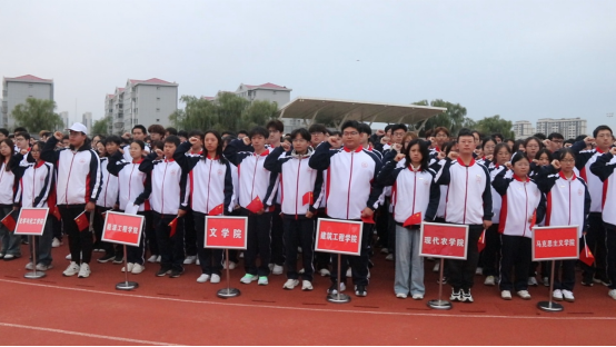 升旗礼毕,在文学院冯婧瞳同学的领誓下,全体青年学子面向国旗,举起右拳庄严宣誓。“铭记历史、奋斗当下、担当未来”的铿锵誓言响彻校园,展现了榆苑学子传承红色基因、勇担时代使命的坚定信念。