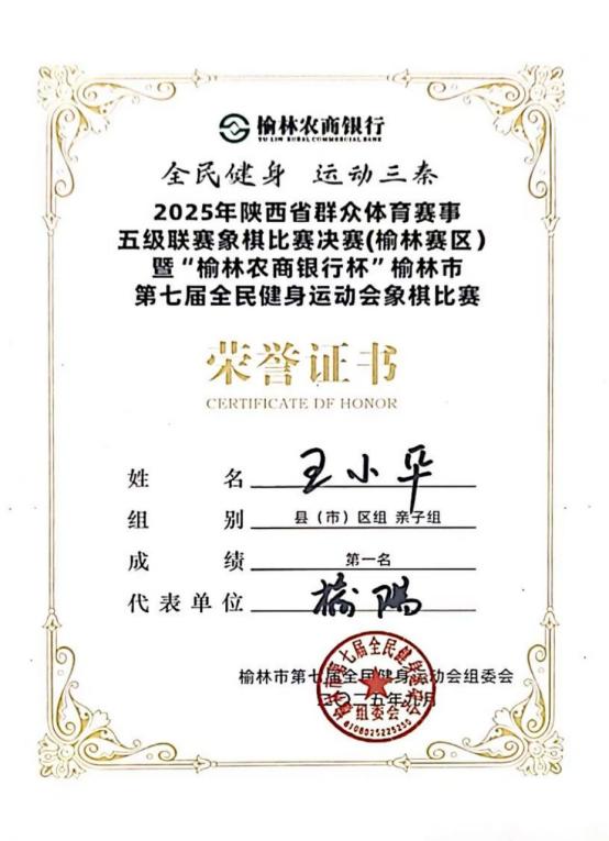 近日,榆林市第七届全民健身运动会象棋比赛在市体育中心圆满落幕。bat365正版唯一官网代表队凭借过硬实力与稳定发挥,一举斩获社会企业组团体冠军、社会企业组个人冠军、亲子组冠军三项荣誉,代表队领队刘博文获评“全民健身之星”,充分展现了学校在传承传统棋类文化与践行全民健身理念上的扎实成效。