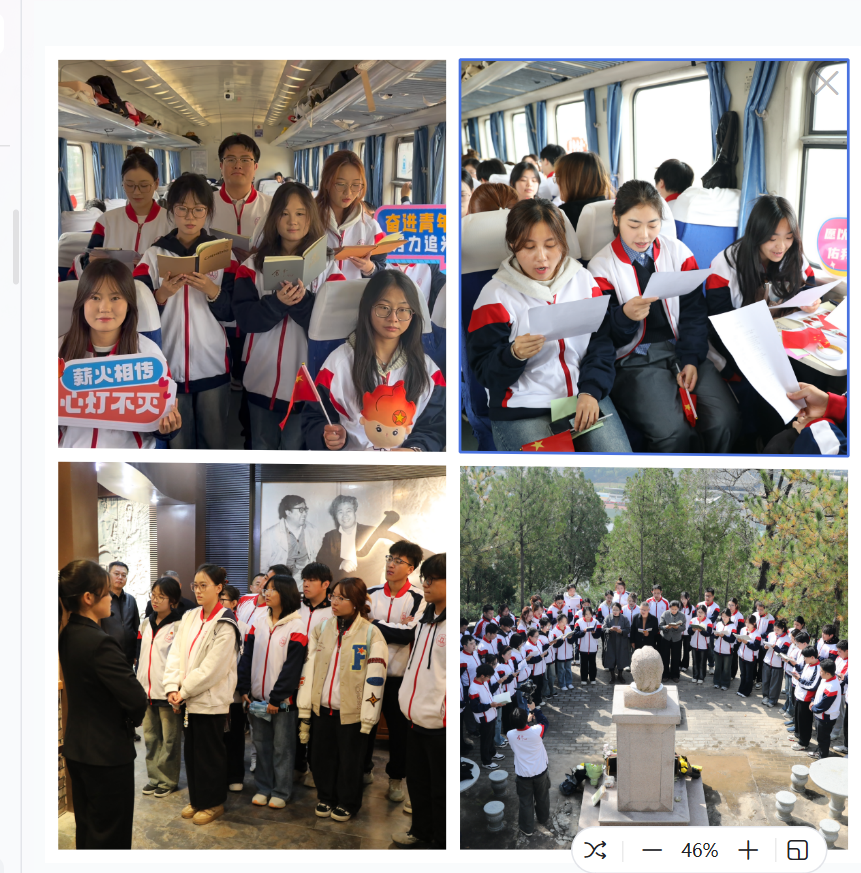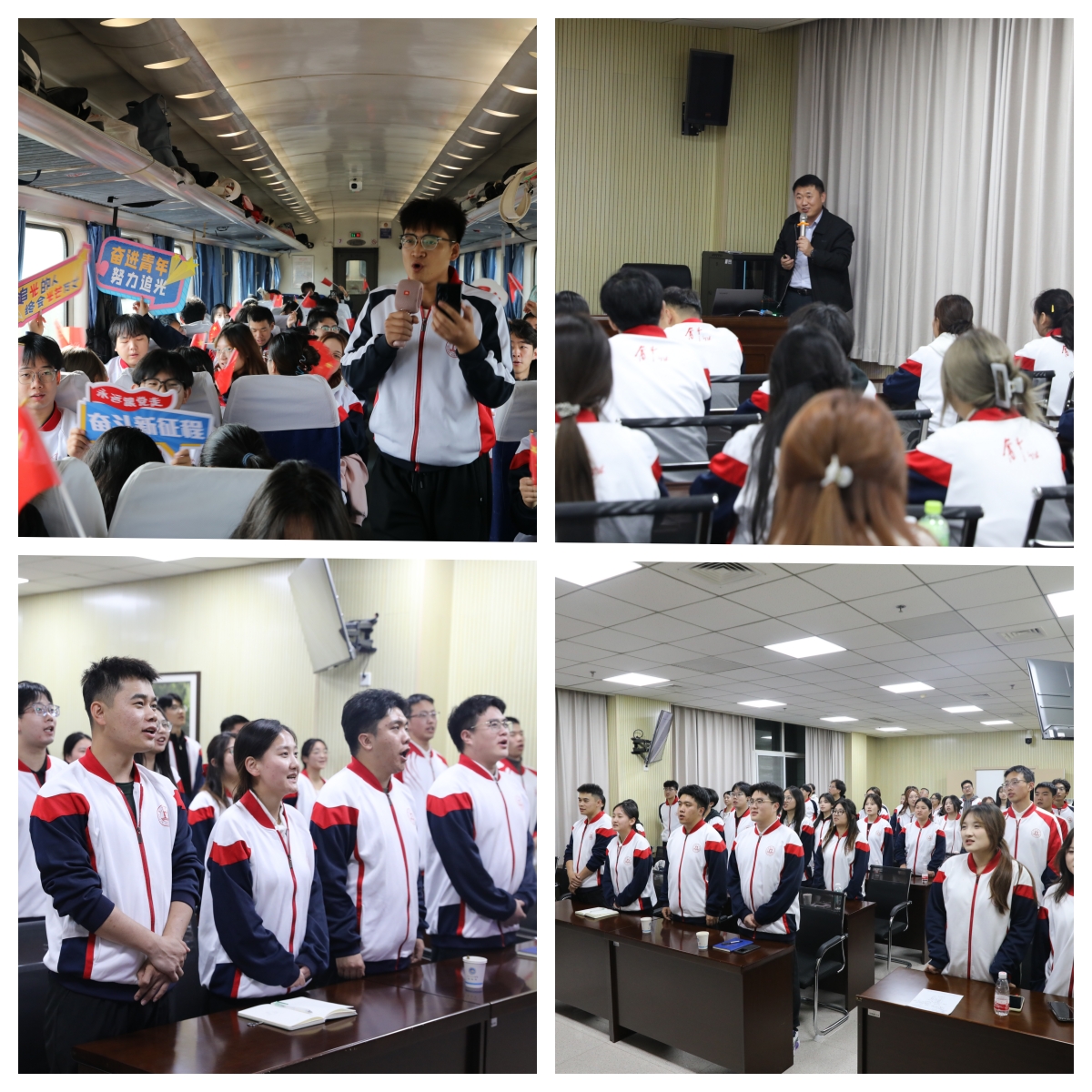 思想对话中的思政课,在“乐讲”中辨理明心。从7005列车到延安,“乐讲”课堂贯穿始终。车厢内,冯婧曈、王一乔同学领诵《回延安》,全体学员接力诵读,句句含情,声声入心;张思德广场上,学员们肃立齐诵《为人民服务》,铿锵誓言回荡苍穹;在与延安大学团学干部的交流座谈会上,同学们踊跃发言,思想碰撞,畅谈精神传承,尽显青春力量。这场从车厢到旧址、从诵读到交流的深情讲述,真正成为一堂行走的、直抵人心的思政大课,让红色血脉在“乐讲”中愈发滚烫奔涌。