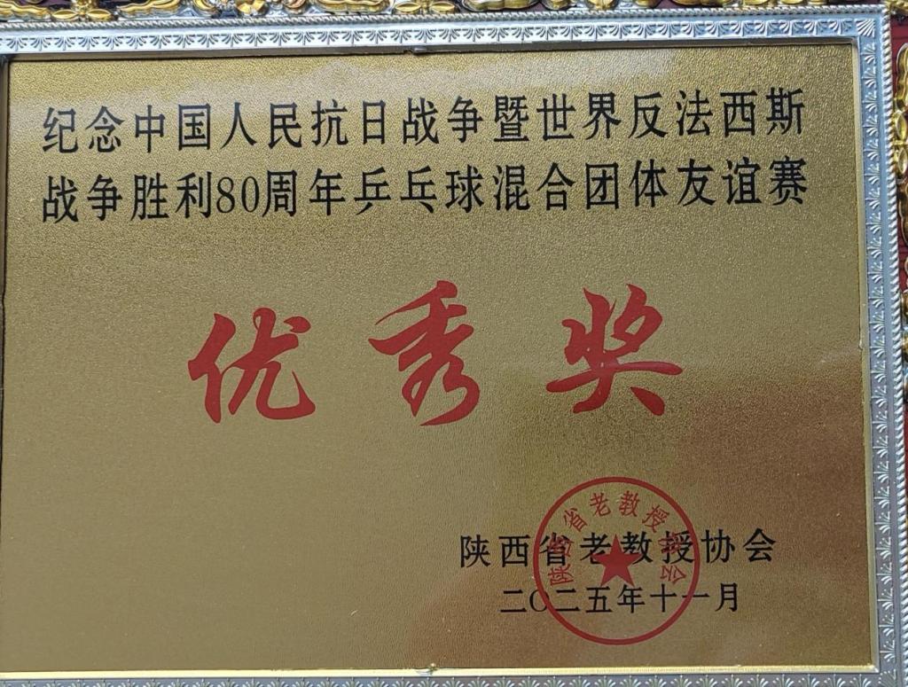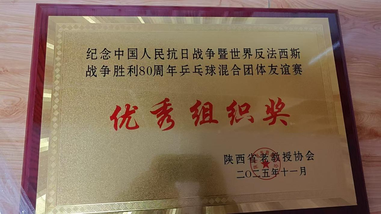 11月1日,由陕西省老教授协会主办的“纪念中国人民抗日战争暨世界反法西斯战争胜利80周年乒乓球混合团体友谊赛”在西北工业大学圆满落幕。bat365离退休乒乓球代表队团结拼搏、表现出色,荣获“优秀奖”与“优秀组织奖”两项荣誉。