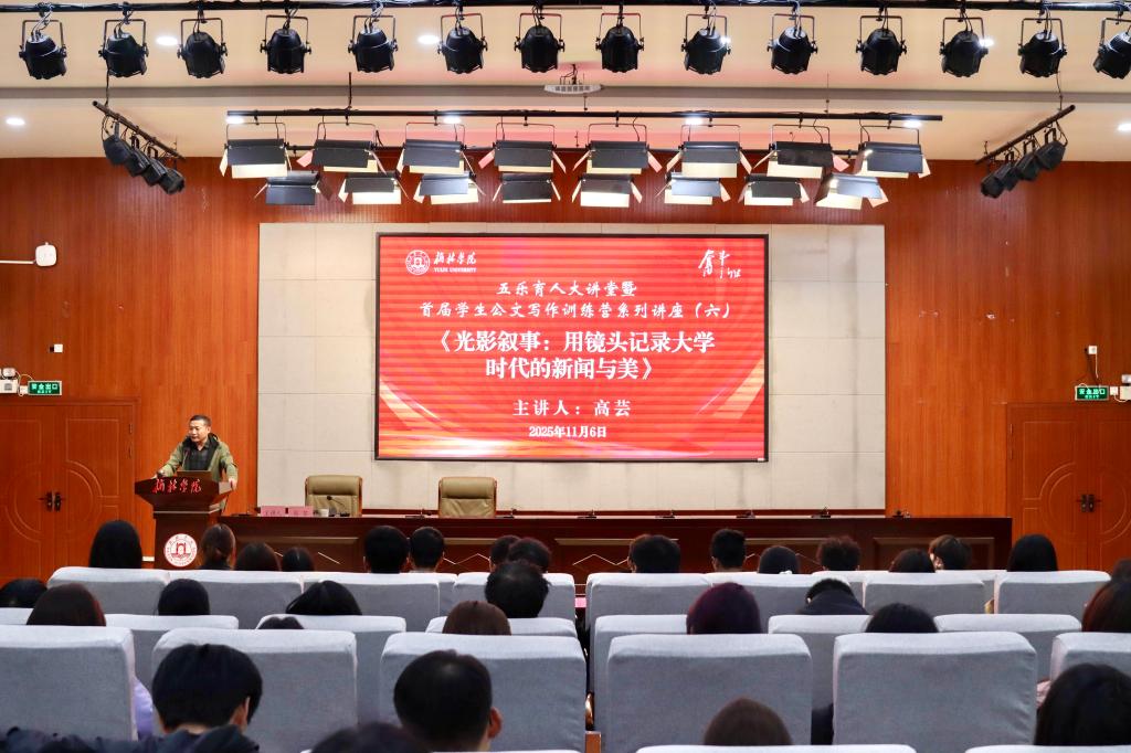 高芸指出,在融媒体时代,视觉表达已成为信息传播的关键,一张好的照片是传递情感、引发共鸣的利器。因此,掌握基本的摄影技巧,不仅是提升工作效能的需要,更是提升生活品质、发现世界之美的必备素养。整场讲座围绕手机摄影的基本设置、构图的基本法则、新闻常见题材的拍摄等方面进行了细致的讲解。讲座与校园生活紧密结合,针对会议、集体合影、文艺演出、体育运动等高校常见新闻题材,逐一分享了实用的拍摄要点与实战技巧。整个讲座层层递进,由浅入深,案例丰富,深入剖析了如何赋予照片平衡感与叙事力,让画面“会说话”。讲座最后高芸以“生活中不缺乏美,而是缺少发现美的眼睛与记录美的能力”与在场师生共勉,鼓励大家要用心观察,不断提升审美能力,用镜头去创造和记录属于自己的美好大学时代。
