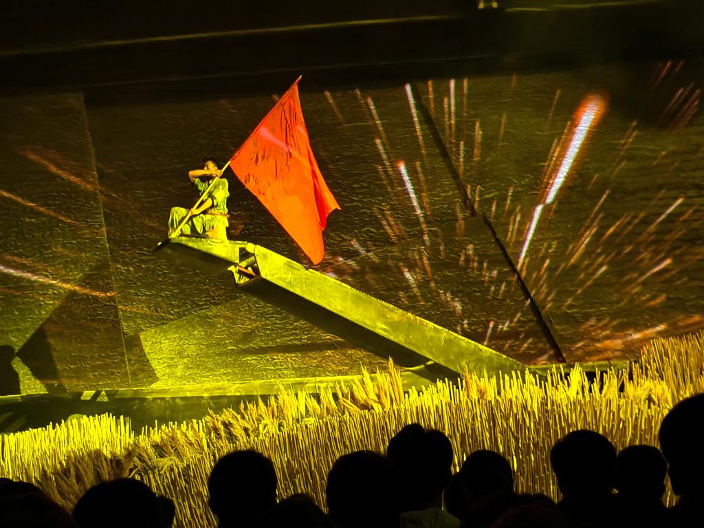 当晚,师生集体观看大型沉浸式红色情境体验剧《再回延安》。剧目以老红军刘宝顺的回忆为主线,再现长征途中红旗班护卫红旗、前赴后继的英勇事迹。沉浸式的演绎让师生跨越时空,深切感受革命先辈坚守信仰、不畏牺牲的崇高精神。