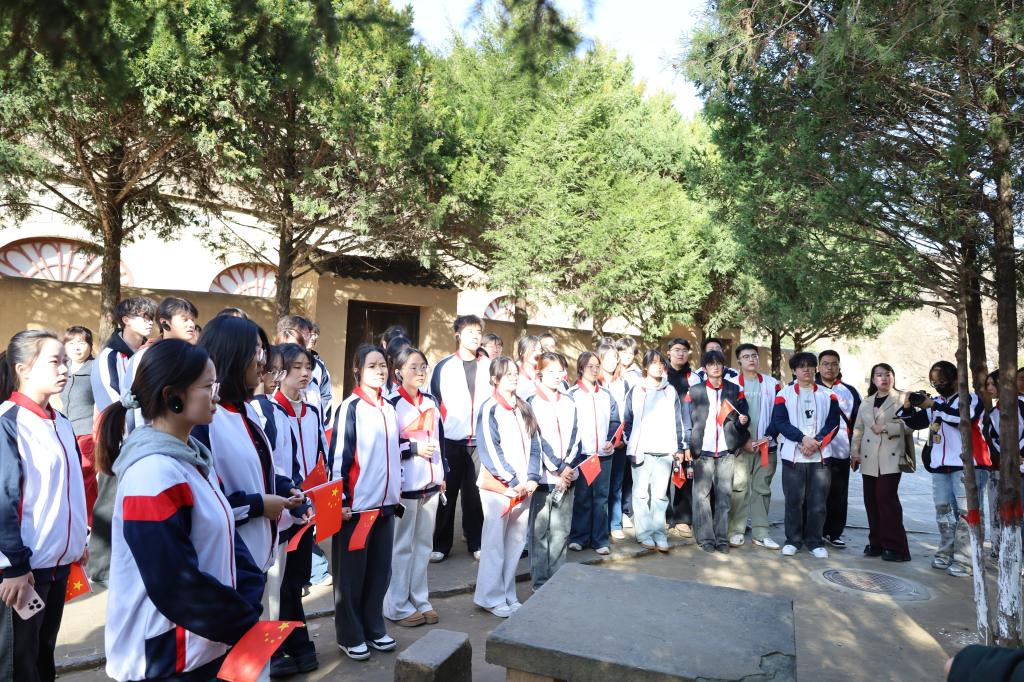 在枣园革命旧址,师生们参观了毛泽东、周恩来、朱德等老一辈革命家的旧居。简陋的窑洞陈设,再现了老一辈革命家在艰苦环境中运筹帷幄、推动中国革命走向胜利的奋斗历程。广场上五大书记铜像巍然屹立,传递出团结奋进、革命必胜的坚定信念。