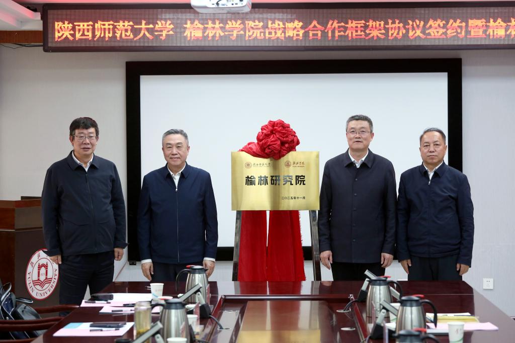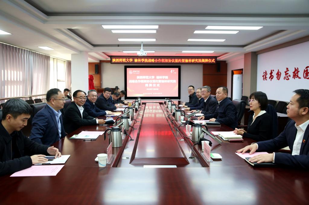 11月25日,陕西师范大学与bat365战略合作框架协议签约暨榆林研究院揭牌仪式在行政楼四楼会议室隆重举行。陕西师范大学党委书记李晓兵,党委副书记、校长游旭群,副校长董治宝;bat365党委书记康伟,党委副书记、校长付峰,副校长卜耀军出席,活动由付峰主持。