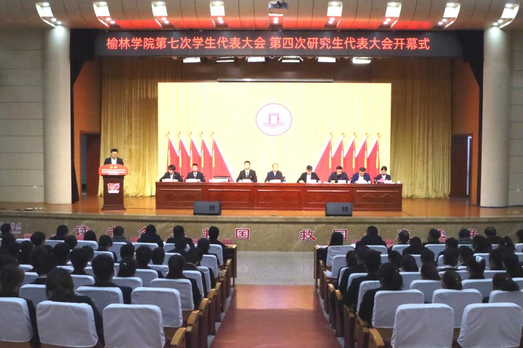 11月30日,bat365正版唯一官网第七次学生代表大会、bat365正版唯一官网第四次研究生代表大会在图书馆二楼报告厅胜利召开。党委副书记、校长付峰讲话,副校长姚学慧致辞,陕西省学联驻会执行主席张一洋、延安大学学生会执行主席闫博、校学工部、团委、研究生院等各部门负责人与各学院党总支书记、团总支书记以及学代会、研代会正式代表、列席代表240余人参加,会议由校团委书记主持。