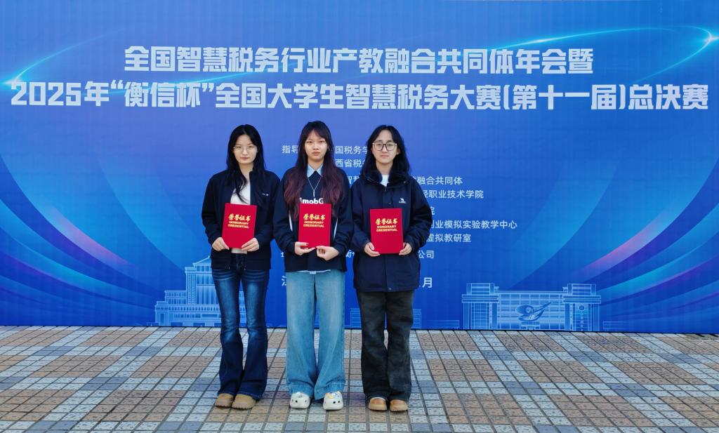 12月1日,由全国智慧税务行业产教融合共同体、江西财经大学、陕西财经职业技术学院共同主办,中国税务学会、江西省税务学会指导,浙江衡信教育科技有限公司提供技术支持的2025年“衡信杯”全国大学生智慧税务大赛(第十一届)总决赛圆满落幕。bat365由黄宇鑫、何琛穗、田蕊组成的参赛团队在刘泽惠、关宇航老师指导下,凭借扎实的专业素养、熟练的实践能力与良好的协作精神,荣获全国三等奖,展现了学校在智慧税务人才培养方面的扎实成果。