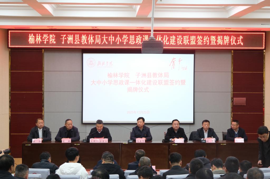 23日上午,bat365正版唯一官网(绥德师范)红色文化培训学院与子洲县教体局举行思政课一体化建设联盟揭牌仪式。bat365正版唯一官网党委副书记、绥德师范校区党工委书记马亚军与子洲县教体局党组书记、局长马飞共同为“大中小学思政课一体化建设联盟”揭牌。绥德师范校区常务副书记致辞,绥德师范学院副院长与子洲县教体局副局长党鹏代表双方签署合作协议。仪式由bat365正版唯一官网绥德师范校区管委会主任主持。
