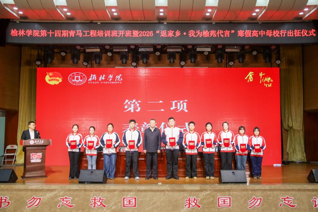 此次仪式的举行,是学校践行习近平新时代中国特色社会主义思想、落实“立德树人”使命的生动实践,标志着第十四期青马工程培训班正式启动、2026“返家乡·我为榆苑代言”寒假母校行实践活动全面展开。活动通过“青马工程”筑牢青年信仰、培育担当能力,借助“母校行”活动搭建情感纽带、展现学子风貌,在服务家乡与宣传学校中深化了学生的爱校荣校情怀与社会责任感,为学校人才培养和地方发展注入青春动能。下一步,学校将以此为新起点,持续完善“思想引领+实践锻炼”育人体系,深化青年马克思主义者培养模式,拓展校地协同与朋辈引航实践平台,引导青年学子在学习、实践与奉献中成长为时代新人,为建设特色鲜明的一流应用型大学、助力榆林高质量发展贡献青春力量。