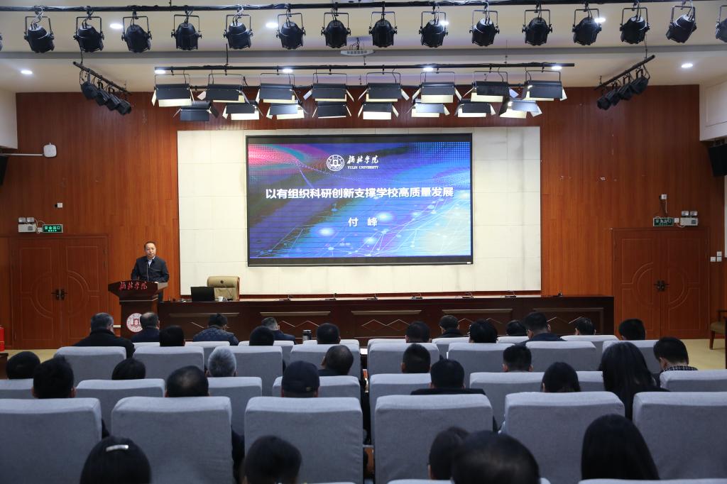 最后,付峰作了题为《以有组织科研创新支撑学校高质量发展》的总结报告。他强调,教学与科研是现代大学的根本属性,高校应自觉担当教育强国、科技强国、人才强国的使命,坚持“四个面向”,推动科研从“自由探索”向“需求牵引”、从“个体研究”向“团队协同”升级。他分析了bat365“十四五”以来科研工作进展与深层问题,指出学校科研虽处于快速发展期,但仍存在重大重点项目偏少、核心技术攻关能力弱、高水平团队缺乏等问题。为此,他提出应形成“教学决定生存、科研决定水平、服务决定地位、质量决定兴衰、制度决定成败”的共识,围绕重大任务构建“大项目-大团队-大平台-大成果”良性循环,弘扬科学家精神,做实科研贡献,支撑学校与区域高质量发展。