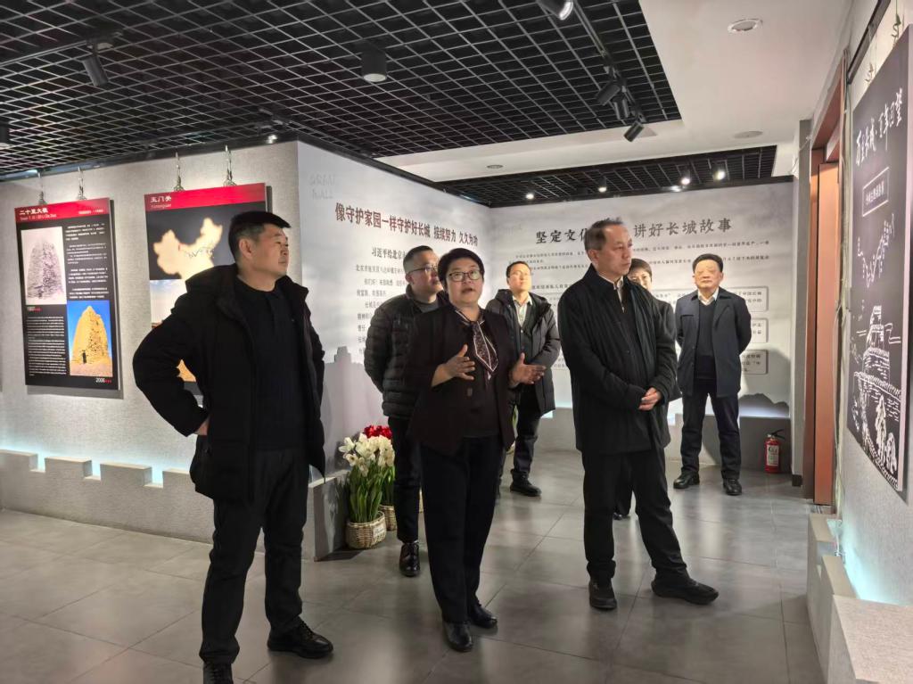 当日下午3时,付峰一行抵达校友企业,在英84级校友、榆林市长城保护志愿者协会会长高秋燕的陪同讲解下,参观了“榆林长城主题展览馆”,大家详细了解长城沿线的历史文脉、保护现状与文化内涵,不时驻足交流,在回望历史、感悟文脉中,共同汲取长城精神的磅礴力量,体会榆林长城文化的深厚底蕴。