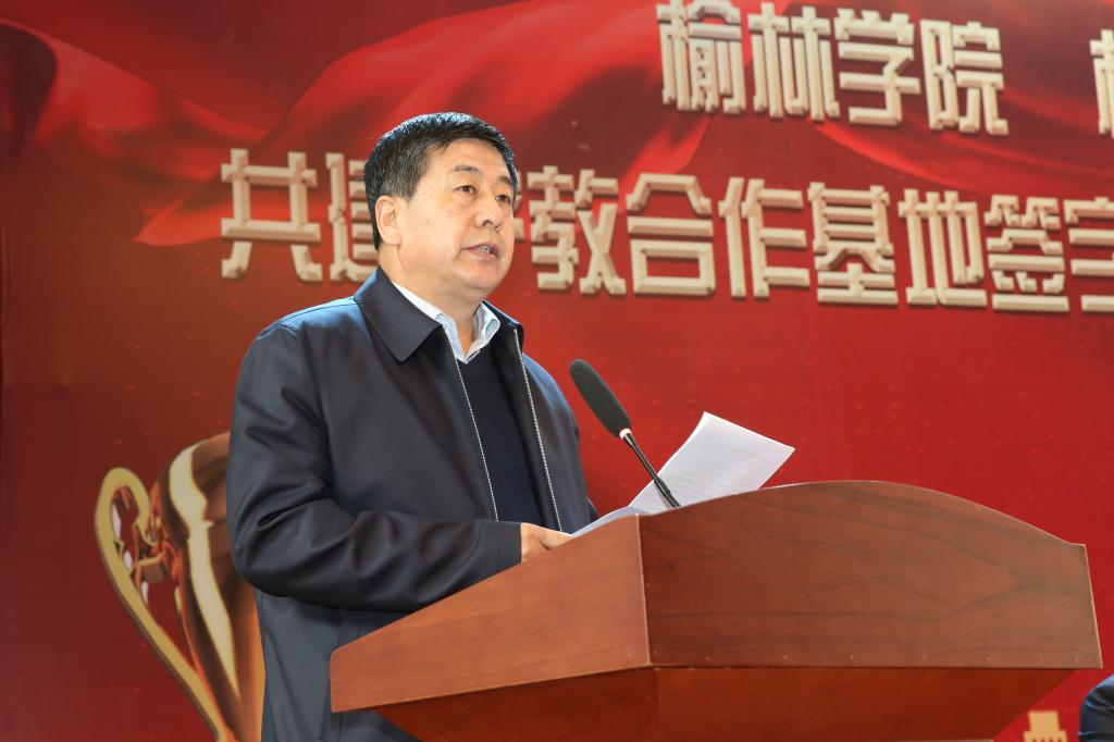 校党委书记、教育发展基金会理事长许静洪与榆林市怀远建工集团有限公司董事长徐怀清分别讲话;bat365副校长张富林,副校长、教育发展基金会副理事长张晓,党委副书记尚爱军;怀远建工集团有限公司副总经理徐怀平、徐怀利、高世鱼,总工尚瑞华在主席台就座。