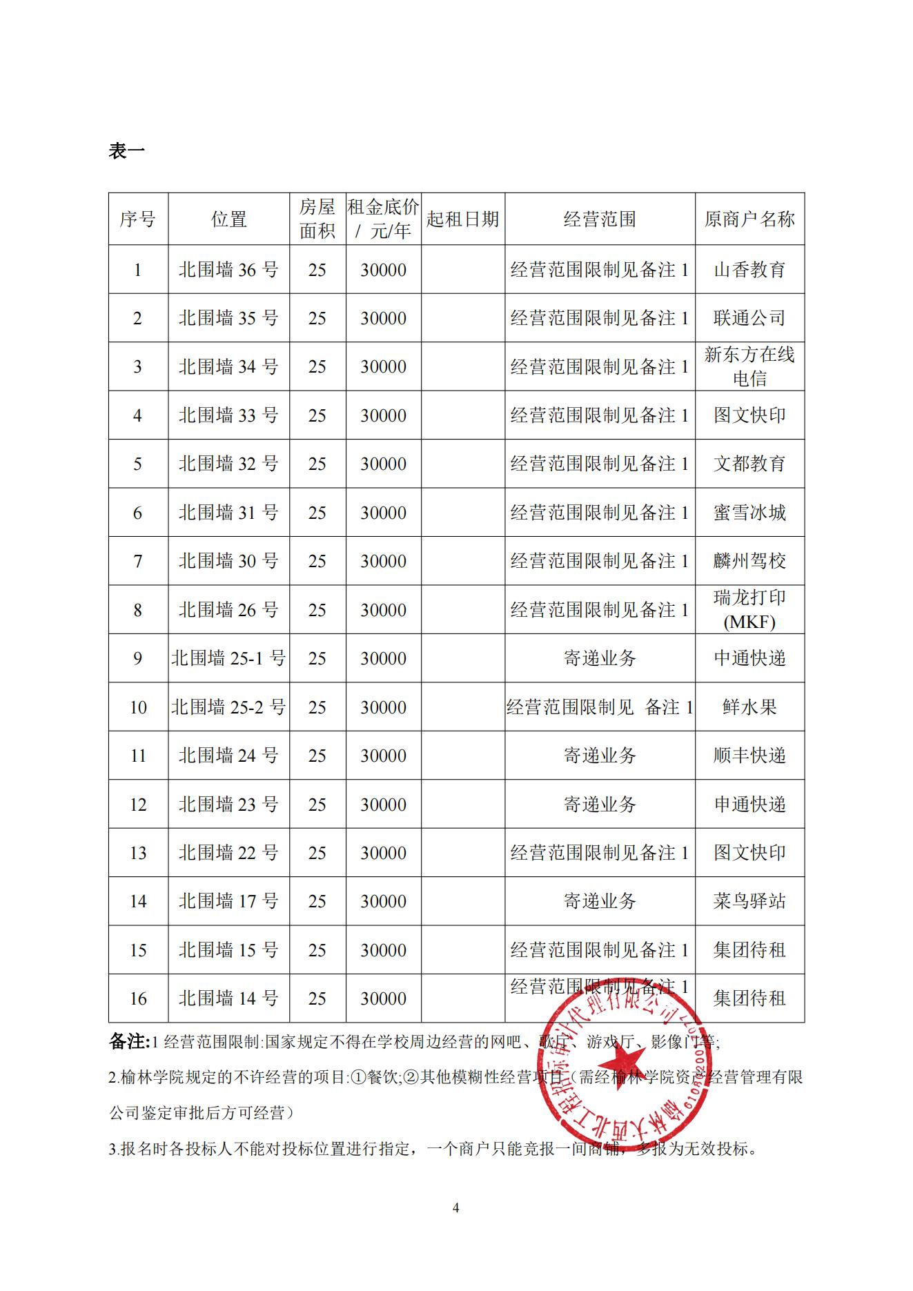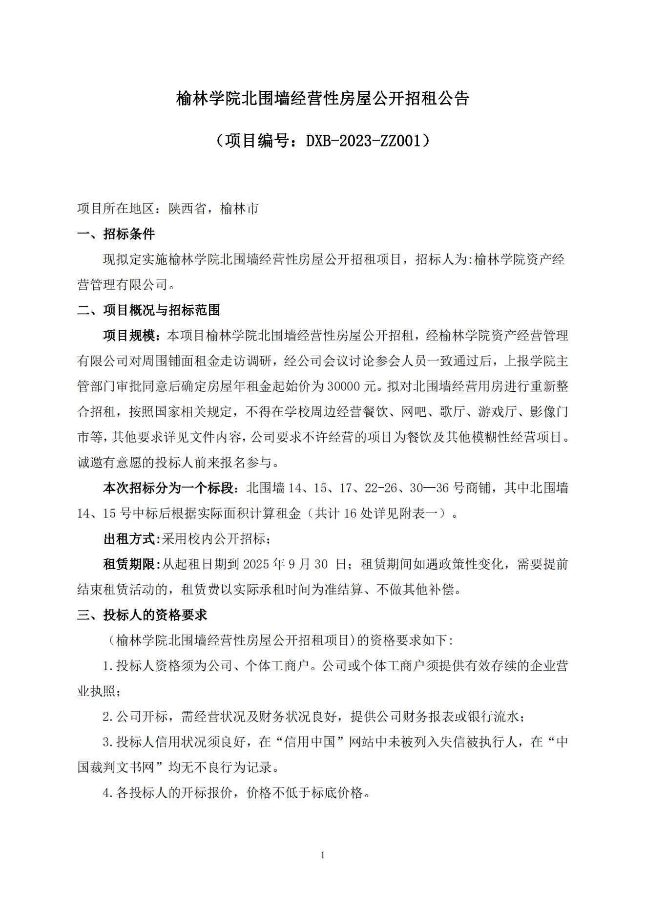 bat365正版唯一官网北围墙经营性房屋公开招租公告