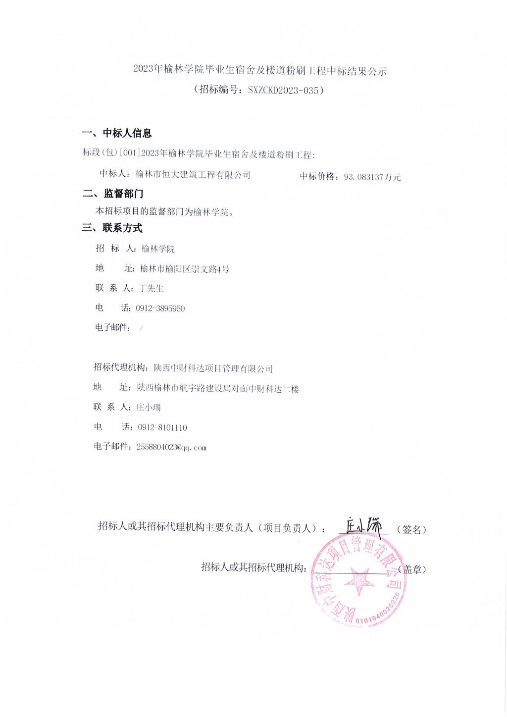 2023年bat365正版唯一官网毕业生宿舍及楼道粉刷工程中标结果公示