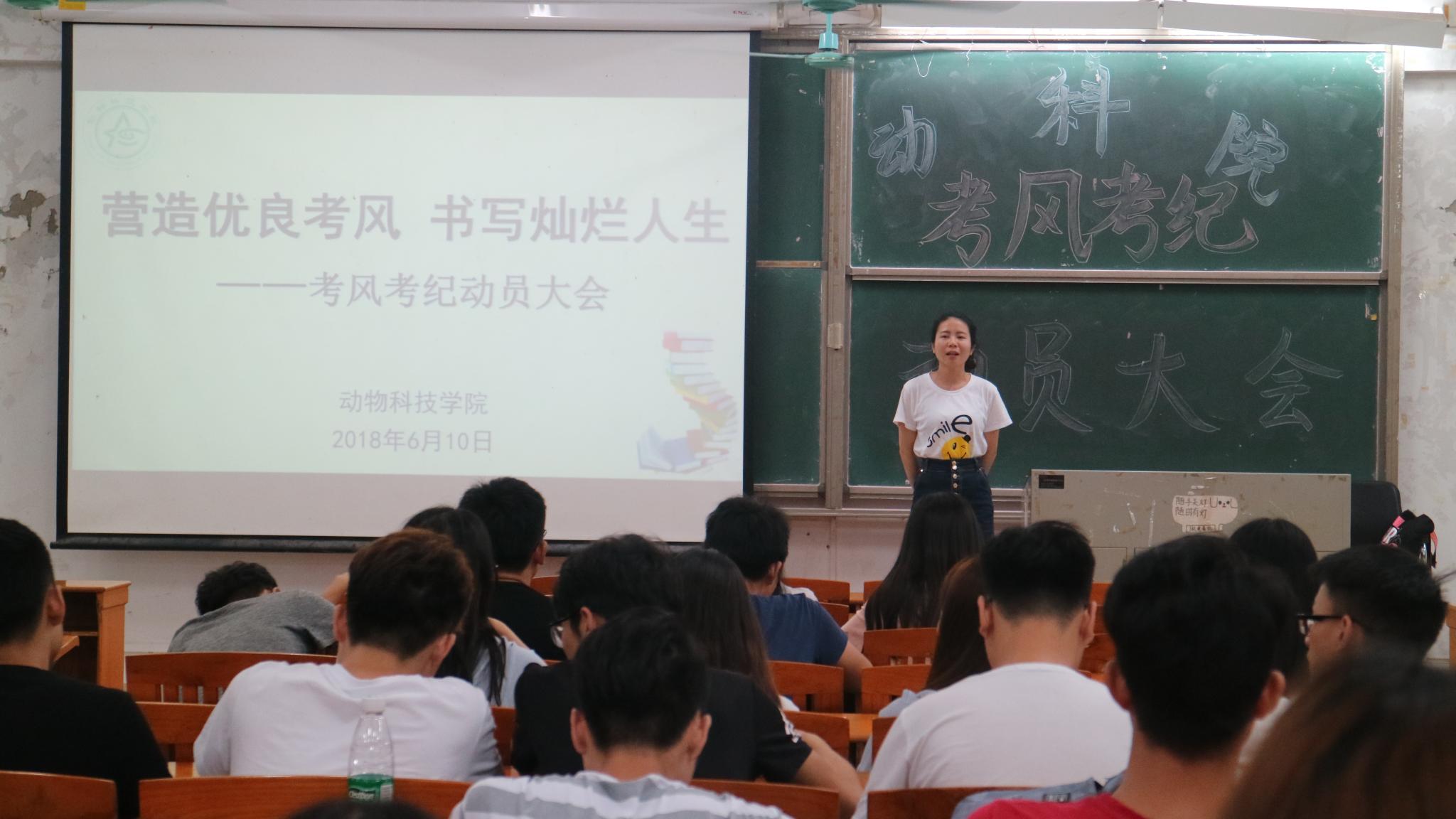 为了进一步加强同学们的考风考纪,构建良好的诚信考试氛围。2018年6月10日晚上18:20kaiyun云开登录入口在杨钊杨勋楼210举行了考风考纪动员大会。动科院全体学生出席了本次会议,并由辅导员许鸿主讲此次会议。