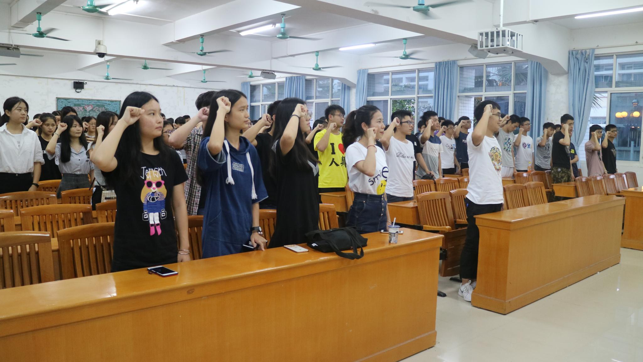 许鸿老师首先向同学们仔细地讲述了考试前会遇到的一些问题,并且讲解了一些学校对考试作弊行为的认定和处理办法,告诉同学们应该树立诚信意识,认清考试舞弊行为的危害性和不可弥补的严重后果。并重点宣读kaiyun云开登录入口的《学生制度管理制度汇编》上的考试违纪处分的处罚细则,同时列举了一些考生在考试过程中所进行的作弊行为会收到严重处罚的例子。随后,在场的所有同学起立宣誓诚信考试。
