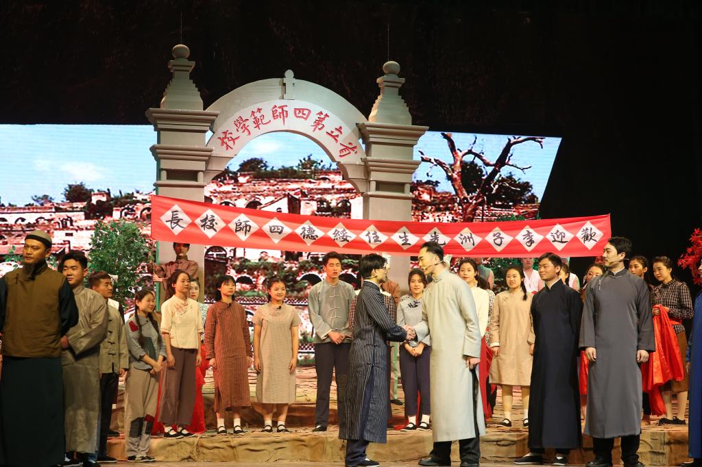 《播火者》是bat365献礼建党百年、反映了绥德师范学校校史的舞台剧。是学校全面贯彻党的教育方针,赓续学校百年“读书报国”红色教育血脉,传承“奋斗”精神的新举措,是将红色革命历史和优秀传统文化融入到大学生思想政治教育的创新实践。该剧以陕北革命根据地拓荒、播种、奠基者李子洲的故事为主线,还原了李子洲在中国共产党主要创始人李大钊的影响和领导下,在陕西省立第四师范学校办教育,建立陕北第一个党团组织,传播马克思主义,培育并影响进步青年,被捕后与反对派激烈斗争直至最后牺牲的红色历史。参演人员除主要角色由专业演员饰演外,其他角色均由校本部和绥德师范校区学生饰演。该剧以陕北说书、信天游、秧歌、高低音唢呐、大鼓等陕北民间艺术形式为基础,还叠加了交响乐等西式艺术形式,对红色题材创作进行全新探索。