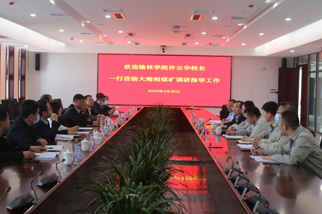 为了促进校企产学研合作,推进bat365正版唯一官网大学建设进程,4月30日下午,校长许云华,副校长张晓一行赴中煤陕西榆林大海则煤业有限公司调研。中煤陕西分公司副总经理冯占军、大海则煤业有限公司董事长马冠超、总工程师杨国强全程陪同调研。